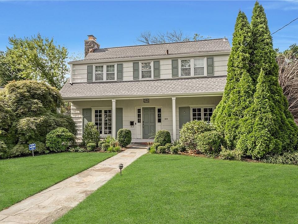 Welcome to 415 Pelham Manor Rd., located on a picturesque block in a prime, walk to all location. This classic center hall Colonial charms with its curb appeal and covered entry porch. As you step into the foyer, you'll be greeted by beautiful hardwood floors, a stunning LR w/wood-burning fireplace, opening to the large, formal DR, complete w/custom built-ins. Sliding double doors lead out to an impressive patio, featuring great outdoor living area and a spacious lush yard. The expansive family room connects to a state-of-the-art kitchen, a den/office and a newly designed full bathroom with integrated laundry. The second floor primary suite features cathedral ceilings, a renovated bath, walk-in closets, and a home office/bedrm. There are 3 add'l bedrooms, including one w/en-suite bath, and a hall bath. The finished lower level adds 850 sq ft of living space. Beautifully decorated with sophistication and flair, this home provides the ultimate living environment both inside and out! Additional Information: Amenities:Storage,ParkingFeatures:2 Car Detached,