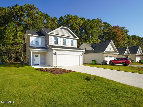 Don't miss this opportunity for a new home just 10 miles to Historic Downtown New Bern! Attention to detail and quality are apparent by the award-winning builder Michael Ford. This home features 9' ceilings, beautiful craftsman moldings, 5 panel interior doors, soft close cabinets and the cottage style windows bringing abundant natural light throughout. The main level features a welcoming foyer, wide plank luxury vinyl and open living concept. Charming guest bath with granite top vanity. Dream kitchen with center island, granite countertops, subway tile backsplash, abundant cabinets, large pantry, dining area with 2nd pantry and stainless-steel appliance package. You'll love the living room with views of the private backyard, ceiling fan and door to access patio. The 2nd level offers 3 bedrooms and two full baths. Secondary bedrooms are generous size, and one has a walk-in closet! The master will spoil you with 2 walk-in closets, ceiling fan and master bath with comfort height double vanities, walk in shower with stunning tile and glass enclosure. Don't miss the fantastic laundry with overhead cabinets and base cabinet with granite for folding and storage. Enjoy the oversize 2 car garage that is 20' x 20', plenty of room to create storage or a workspace. Nestled in an established community, Falcon Bridge offers easy living with HOA maintained yards, community playground and minutes to parks, dining, shopping, and all the charm New Bern offers.