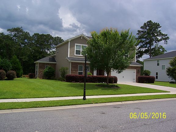 Sitting on the Par 3, 7th hole of Lost Plantation Golf Club sits an immaculate representation of a quality built home - The Albemarle, by Landmark 24 Homes. Home is ten years old, but feels like the builder just put on the finishing touches to include rounded corners, archways, smooth ceilings, and crown moulding. True hardwood floors are flawless! Owner's Suite is on the main floor with double vanities and separate tub and glass shower. Three additional bedrooms and full bath upstairs as well as a secondary Suite (large room with closet and full bath) bringing the total to five bedrooms, three and a half baths. You won't have an issue finding a place to store extra items as all bedrooms have ample closet space, the garage is especially wide, and there are two walk-in attics! Enjoy the exterior's gorgeous landscaping and perfect pergola sitting over an enlarged patio overlooking the golf course. An hour to Tybee Beach, 30 minutes to Downtown Savannah and not in a flood zone!