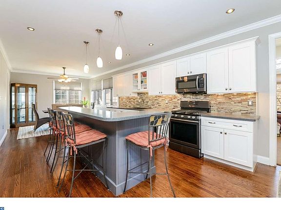 Welcome to 415 Plush Mill Road, an incredible stone and stucco home that has been completely renovated! This home sits upon 1.32 acres of land, which includes a separately deeded buildable .66 acre lot, an outstanding value at $699,900. The grand foyer welcomes you into the home with tall ceilings, a wood burning fireplace, coat closet, chandelier, staircase and a powder room. Kitchen with breakfast room is open and spacious offering beautiful hardwood floors, tile backsplash, pantry cabinet, crown molding, center island and plenty of countertop and cabinet space for all your food preparation and storage needs! Hardwood floors from the breakfast room flow into the formal dining room. Arched glass door entry to the living room with crown molding and hardwood. Stunning great room has over 16' ceilings, chandelier and track lighting. This room is the perfect space for entertaining. The main level is complete with a sun-drenched family room with French doors to the deck, a laundry room and powder room. Upper level master suite is luxurious with a sitting room with warm fireplace, large bedroom with 2 walk-in closets and en-suite with jetted tub, marble countertop, oversized shower stall, tile floor, heat lamp and more! An additional bedroom with en-suite and jetted tub/shower can also be found on the upper level. The 3rd level offers 2 additional bedrooms, one containing skylights and the other with en-suite with jetted tub/shower and linen closet. The basement has been finished to offer additional living space with many rooms. This lower level boasts a kitchen, breakfast room, 2 bedrooms, 2 full baths with tubs, and exercise room and an entertainment room with recessed lighting. With many spacious rooms this home offers ideal space for both gracious entertaining and comfortable family living. There is also a detached 5-car garage with heat and electricity. Minutes from happening Downtown Media Borough, train service to Center City, major routes, Philadelphia International Airport, Wallingford Community Arts Center and so many other great local amenities. There are few remaining buildable lots in Wallingford, this lot appraises at $150k. Do not miss out on this once in a lifetime opportunity.