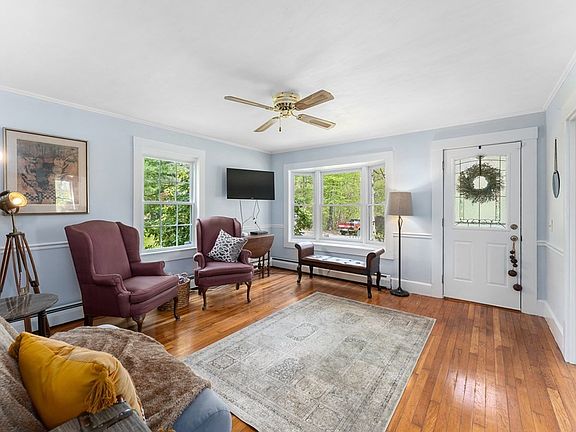 *OFFER DEADLINE: 5/18 at 7PM* New England Cape is move in ready, sitting on 2 acres, with 4 bedrooms, 2 full bathrooms and over 1700 square feet of living space! Enter through your side door into the large, wide-open kitchen with cathedral ceiling. Here you'll find tons of cabinets and counter space, updated stainless steel appliances, a butler's pantry, plus a traditional pantry in your eat-in area. The living room and dining room are directly off your kitchen with matching bay windows and hardwood floors. Also on your main floor is the primary bedroom with hardwood floors and 2 large closets. Before heading upstairs, check out the full bathroom (also on your main floor). On the 2nd floor is 3 additional bedrooms (all good size, with hardwood floors and closets) and another full bath! The walkout lower level is just waiting to be finished and houses the newer boiler & oil tank, replaced in 2017. You will not be disappointed with this recently painted, well-maintained home!