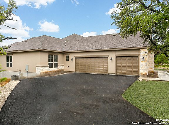 True Hill Country living can be found in this gorgeous, fully-custom, brand new home! On a sprawling 1.75 acres, filled with majestic oaks, this 4bed/3bath/3 car 1-story house is THE place to call home. It's open floorplan, tall ceilings, rock fireplace and stained concrete floors make it perfect for entertaining. You can walk through the glass, accordion doors to the covered, back patio and on to the refreshing, spring-fed creek. You won't want to miss this! Upgrades can be found in Additional Information