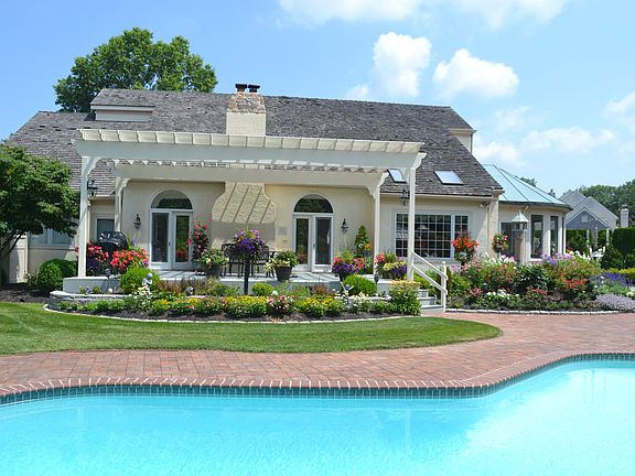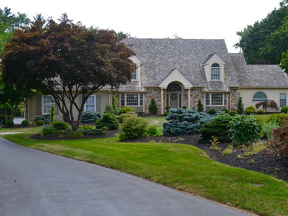 Impeccably maintained custom Cape with FIRST FLOOR MASTER BEDROOM. On a professionally landscaped acre lot. At the end of a cul-sac with 10 custom homes. The perfect house for entertaining!Open floor plan, huge deck with Pergola overlooks heated pool,hot tub, pool house w/powder room,sink,cabinets,seating area,storage space,remote awning for shade,outside shower. Formal 2 story entry,pocket doors to office/den w/bay window,crown molding,speakers,double closet. Great Room has vaulted ceilings,2 sets of double doors to deck,floor to ceiling stone gas/wood fireplace w/wood mantle, skylights, wet bar, wine rack, built in cabinets and book shelves. Custom Kitchen with no expense spared! Granite counters,hardwood floors,recessed lighting,skylights,ceiling fan w/light,picture window overlooks back yard, soft close drawers,pull-out shelves,pantry closet,stainless appliances,double sink, 5 burner Wolf gas stove top with down draft vent to outside,double wall oven,island with plenty of counter & storage space,built-in cherry hutch w/granite top, lighting and storage. Sun Room has 9 windows, vaulted ceiling,fan,new carpet,door to back yard. Double door lead into the First Floor Master Bedroom Suite, gas fireplace w/tile surround,vaulted ceiling 2 custom walk-in closets, French door to another deck off bedroom, tiled floor in bath w/new cherry cabinets & corian counters, 2 separate sides with lots of counter and cabinet space,recessed lighting,stall shower w/floor to ceiling tile,frameless door,built-in shelves,separate toilet room,jacuzzi tub w/tile surround and big window over tub,skylight. Laundry Room has tile floor, 2 large closets, sink,cabinets and storage space,leads to 2 car attached garage with more closets. Powder Room. Second Floor: Bedroom suite w/walk-in closet, full bathroom with 2 closets, window seat w/cedar storage below, tile floor, tub, separate stall shower. NOTE: 4TH Bedroom is through this room and has heat,A/C, carpeted & closet. Bedroom suite w/dressing area,walk-in closet,cedar closet,Full bathroom w/stall shower, tiled. Basement is divided into 3 separate huge areas, finished, powder room,utility sink,storage room,loads of closet space. 2 zone heating,alarm,whole house generator,cedar shake roof,hardwood floors,pool house,fenced yard. See attached page of improvements & quick facts. This is just a small sampling of this house...you have to see to appreciate all the beauty. Move in just in time to enjoy your summer pool parties.