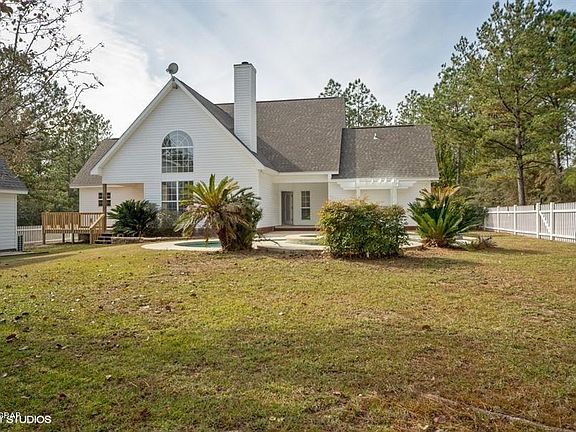 Here is an amazing opportunity to own a beautiful home on 6.5 acres in the northern section of Walton County and only 25-30 minutes from the beaches of 30A! Located on a very quiet dead end road, the long wooded drive definitely creates a feel of sanctuary and escape. There is both a main house and a carriage house on this property. Under the living space of the carriage house is an over sized, 2 car garage and workshop. The main home has a grand foyer entrance, the living room has 20 ft ceilings and a fireplace. The dining area is open to the living room and there are decorative columns that accentuate the grand feel of the home.