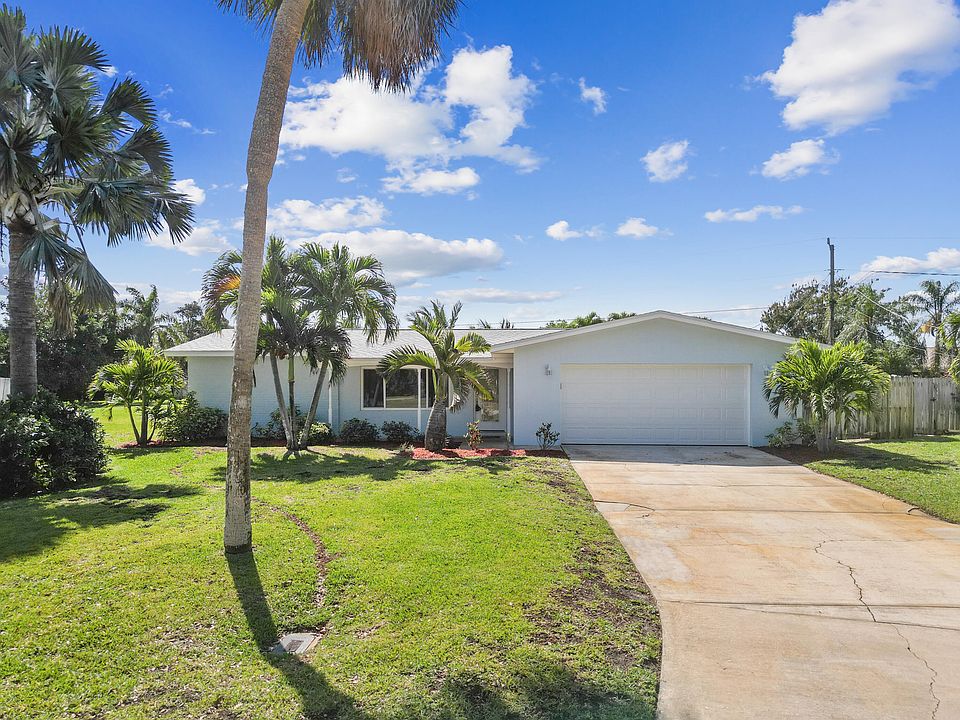 Experience the beauty and excitement of coastal living in this incredible Satellite Beach home! Situated on a large corner lot (PLENTY of room for a pool), this property offers a rare blend of space and convenience. Turn-key and move-in ready! Recent upgrades including a new roof (2023), full AC system replacement (2023), and impact-resistant windows (2018) to ensure both comfort and durability. Discover the bonus office room, providing an extra 200 SF of versatile space ideal for a home office or hobby area. Step outside to the expansive back patio, spanning over 600 SF, offering ample room for outdoor entertaining or simply relaxing in the Florida breeze. With its prime location near both the beach and river, top-rated schools, and serene neighborhood ambiance, this home presents an unparalleled opportunity to embrace the quintessential Florida lifestyle and to create lasting memories with your friends and family.