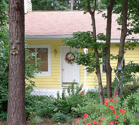 Bright, open ranch with vaulted living area, bank of windows on back of house overlooking deck and wooded yard, great efficient use of space.