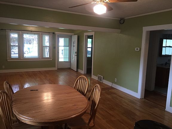 Perfect "University area" location- Beautiful Craftsman style home w/ inviting covered front porch. ALL NEW: interior & exterior paint, paint on closet doors, Refinished hardwood floors in LR, dining room, & 2 BR, lights/ceiling fans throughout the main floor, lights in basement FR, custom blinds, refinished original heat registers, refinished original doors & hardware, main floor BA updated from ceiling to floor, & updated basement BA. MAIN FLOOR: spacious, bright LR w/ many windows for natural light, dining room has built-in shelves/cabinet, 2 BR (one w/double closets), tastefully remodeled BA, large country style kitchen (all appliances included-2017) has tiled floor, butcher block counter tops, tiled back splash, built-in shelves and bonus sunroom w/ storage . BASEMENT: large FR, 2 BR, updated tiled BA & tiled laundry room. Metal roof, vinyl windows, flowering trees, flowers, full fence, sprinkler system, brick patio, shed w/ alley access