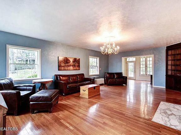 Step into history with this stunning brick masonry home built in 1950, offering a sprawling 4,890 SQFT layout with 6 bedrooms and 4 baths. Located in the heart of downtown Rockwood, this charming residence greets you with ample parking, along with a convenient water and electric RV hookup pad. A brick paver walkway leads to the front door, which is sheltered by the stately charm of a columned covered front porch. The formal entryway reveals a grand turned staircase and hardwood floors that flow into a large living room where a fireplace adds an intimate touch, and a built-in corner cabinet invites a prominent place for your most treasured curios and keepsakes. A light-filled office features a wall of built-in bookcases and glass paneled exterior door, perfect whether working from home or just handling household business. The white kitchen stands as the heart of the home, accompanied by both a formal dining room as well as a quaint breakfast room. On the main level is the primary bedroom, which is accompanied by its own private ensuite bath. Heading upstairs you will come across a spacious flex room, a small kitchen and the remainder of the bedrooms. The basement offers some additional finished space as well as storage options. Outside, a brick 10' × 10' patio offers a great alfresco destination under the protection of mature shade trees. This one-of-a-kind residence offers the perfect balance of nature and urban accessibility. Don't miss the chance to own a piece of history in a prime location. Call Today! Buyer to verify all information.