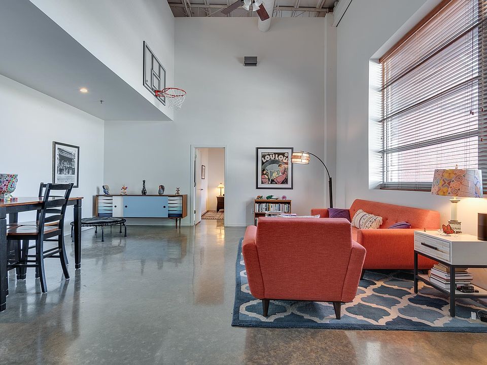 Great Downtown Location one block from the River and walking distance to restaurants and entertainment on S.Main. Large Great Room you can literally play ball in. Tons of storage including a walk in closet.
