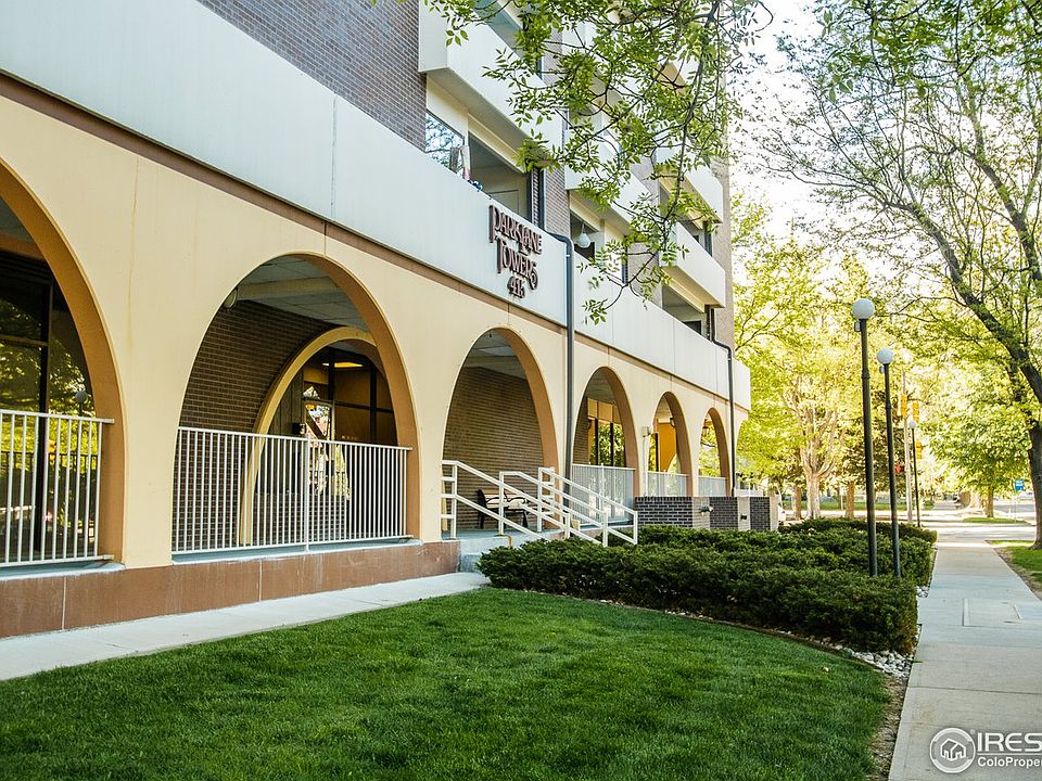 West facing condo with city and mountain views from your balcony. HOA includes all Utilities, basic DirecTV, Indoor heated Pool, Outdoor heated Pool, Hot tub, Sauna, building security entry system, on site management, meeting room, party room, req room, exercise room, storage area. On site apartment for rent for when you have guests. Includes covered parking space. Close to CSU campus and Old Town. An amazing value for a 2bed 1 bath, end unit condo in the Downtown area.