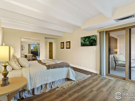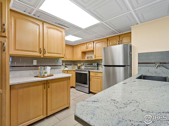 PRICE DROP!! Spacious condo nestled in the heart of Old Town Fort Collins. Just steps away from top notch restaurants, Lucky's market, the Lincoln Performance Center, CSU, museums, vibrant bars, and entertainment hubs. Sweeping tree-top vistas of Old Town and breathtaking sunrises from the 7th floor. This 1,290-square-foot condo, a combo of two units merged into one, boasts an expansive en suite master bedroom, an additional bedroom or office, and a second full bathroom. The open kitchen seamlessly flows into the living room and dining area, creating a generous living space. Relax outdoors on two separate balconies offering ample space and panoramic views. Special features include new, gorgeous solid Alder wood windows throughout, new wood-framed sliding glass doors to the balconies, new baseboards and flooring, and stainless steel appliances including fridge, range, and dishwasher. Enjoy the convenience of an in-unit washer/dryer combo, two storage areas in the basement, and two covered parking spots. Concrete walls and ceilings and double-paned windows ensure near-total soundproofing. HOA fees cover all utilities including cable TV/internet, heating, cooling, electric, waste, water. Access to two pools, a hot tub, a sauna, a game room & gym, community rooms, and a brand new pickleball court on the West side of the building. The best of Old Town living!