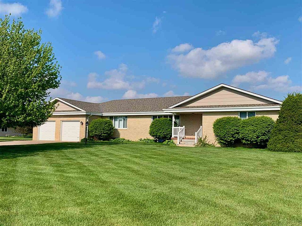 Come check out this wonderful acreage near town. This property has over 4 +acres. 2 quonsets, grain bins, garages.(2 ATT 4 DET) One quonset is heated and insulated. The house has 3 bedrooms, 3 baths, plus an office which could be a bedroom. The patio door is newer with internal blinds. Main floor utility. Partial fin basement. (2 Funaces 2 CA). This is a dream come true, country living at its best. Come take a look, you'll fall in love!! Closing date is subject to seller finishing home being built. Sq footage and info may vary from Court House. Available to show anytime. Has security system.