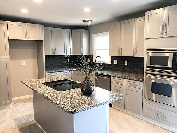 Completely remodeled 3 bedroom home on tree-lined street.New kitchen cabinets & granite counters w/stainless appliances & spacious island.New lighting, carpet & tile flooring.Updated bathrooms.New windows, roof, gutters, electrical box + wiring, decking, new furnace, water heater & more! Split level home offers open kitchen to dining & living room. Basement family room w/fireplace + stubbing for 1/2 bath & bar. Exterior boasts large deck, level backyard & mature trees.This holiday gift is ready to move right in!