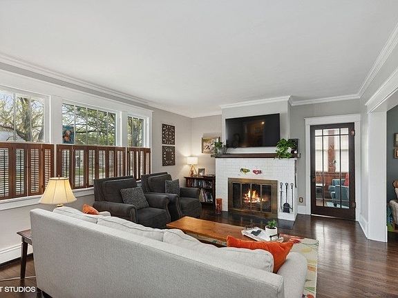 Vintage charm with beautiful updates of modern convenience. Original woodwork, hardwood floors and character in downtown Crystal Lake. Seller has remodeled the kitchen with white cabinets, quartzite countertops, high-end stainless steel appliances and unique shelving made from an old railcar flooring. Great living space...living room with fireplace, large dining room with built-in cabinets and shelving, first floor office, 3-season room off kitchen and first floor powder room. Master suite with tastefully remodeled bath and walk-in closet on 2nd floor including 2 more generously sized bedrooms and updated hall bath. Interior stairway to 3rd floor finished attic space currently used for a playroom and storage. Full dry basement has rec room with vinyl plank flooring, game room and more storage. Entire outside and inside recently painted, hardwood floors refinished, recent updates of kitchen/hall bath and adding full master bath, fireplace and boiler recently serviced and inspected. Great location near shopping, schools, restaurants and Main Beach.