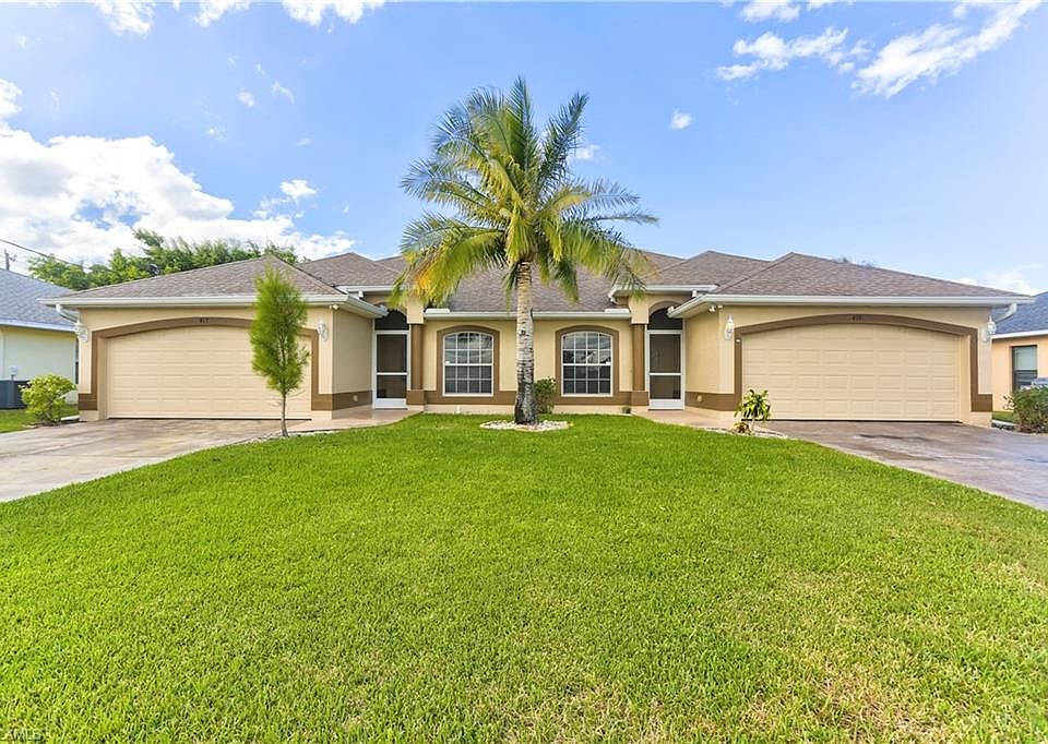 Come and see this LAKEFRONT Duplex in excellent condition 100% move in ready featuring large open floorplan units and upgrades including tall ceilings, large kitchen, tiled showers, stained driveways in addition to a large concrete pavered dock right on the lake. This home is not your run of the mill duplex popping up everywhere, you could feel comfortable living in one unit and renting out the other! This home was also fully painted Exterior and Interior of both units in 2019! Left side unit has brand new carpet and the right side unit's carpet is only 6 months old in perfect condition. The garages were also fully painted including the floors to give the house a clean fresh look. The goal was to prepare this house to compete head to head with brand new construction so this house certainly stands up to the challenge! The location is excellent with tons of shops restaurants on Pine Island Rd, easy access to Fort Myers and centrally located in Cape Coral. The city water and sewer assessments are almost fully paid off and a small balance of $4862.34 is remain on the sewer as of the listing date. This is a huge benefit compared to new construction with new assessments.