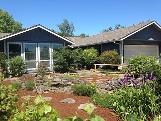 Gardeners delight in great westside neighborhood! Enjoy the abundance of fruits (blueberries, strawberries, grapes and more) that all grown on this property. 3rd bedroom has had the wall removed to make a dressing room for the master. It could be put back to a 3rd bedroom if someone wanted too. Great water feature at the front door that feeds into a pond. Finished studio/shop in the backyard, covered patio and walking path behind.
