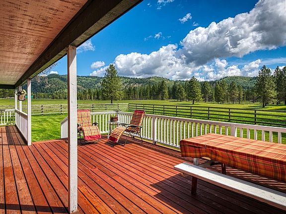 Escape to your own private Idaho paradise with this impeccably maintained farmhouse, nestled on 10.8 acres of fertile, fenced pasture and timberland, framed by breathtaking mountain vistas. Just 30 minutes from the pristine shores of Priest Lake—Idaho’s Crown Jewel—and an hour from the world-class slopes of Schweitzer Mountain, this property offers the ultimate blend of serenity and adventure. Step inside this 3,600 sq ft cedar-sided retreat, where rustic charm meets modern elegance. With 6 spacious bedrooms, 4 well-appointed bathrooms, an office, and a cozy family room, this home is designed for both relaxation and connection. Custom finishes elevate every corner—gleaming hardwood floors, intricate tile work, fresh paint, and a cottage-style kitchen with custom cabinetry that’s as functional as it is beautiful. Perfect for hosting, the open layout flows effortlessly, inviting gatherings large and small. Outside, unwind on the expansive wraparound covered porch or extended deck. Equestrian enthusiasts will find their dream setup: cross-fenced fertile pastures, a 48x48 barn with 3 stalls, a heated tack room, hay and equipment storage, a round pen, and even a chicken coop. The heated, oversized 2-car garage doubles as a craftsman’s haven, complete with a full-length workbench, woodworking space, and attached garden shed. Saddle up and ride straight from your doorstep to nearby trails, or venture out to explore thousands of acres of pristine public land. This homestead isn’t just a home—it’s a lifestyle, offering unmatched comfort, thoughtful functionality, and endless opportunities for outdoor pursuits. Located 2 miles off Hwy 57 with easy access to Priest River, your closest town, just 15 minutes away.