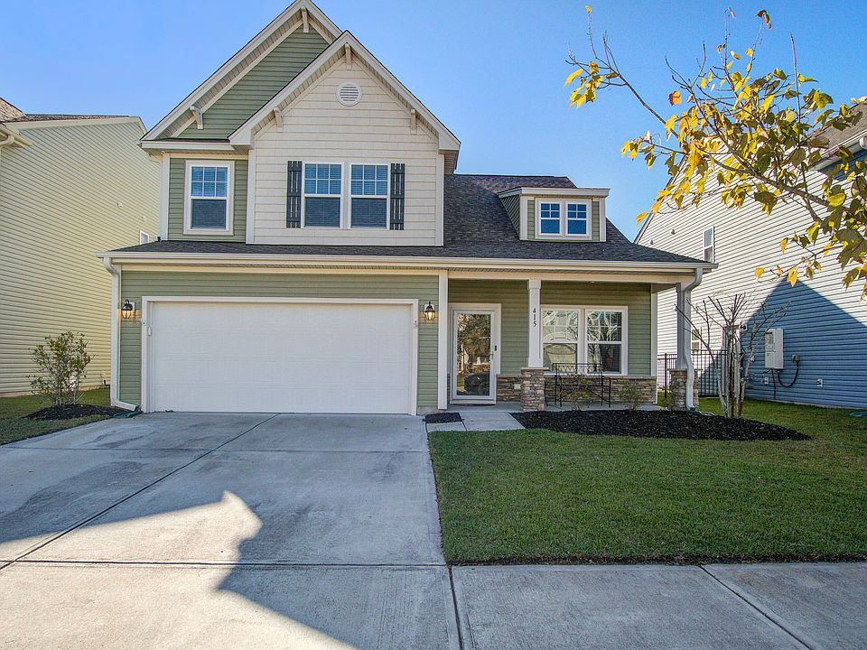 Located in the North Creek neighborhood of Nexton, this 3-bedroom, 3.5-bath home offers over 2,400 sq. ft. of living space with a loft and bonus room. The inviting front porch welcomes you inside, where the first floor features a primary suite with tranquil pond views, a formal dining room connected to the kitchen through a butler's pantry with dedicated wine storage, and a gourmet kitchen with a large island that opens to the living area. A powder room and laundry are also located on the main level. Upstairs, you'll find two additional bedrooms, one with its own full bath, along with a loft and bonus room. Outdoor living includes a fenced backyard with an iron gate, water views, and a 2-car garage for added convenience.