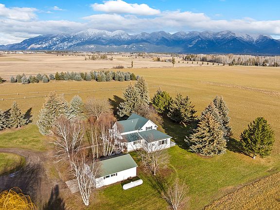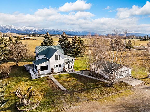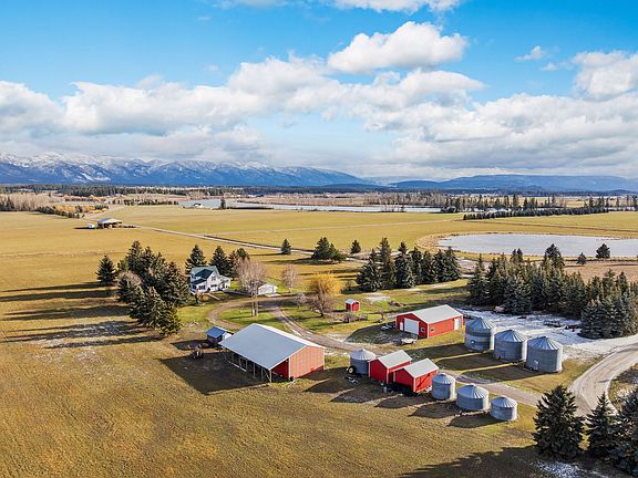 Offering apx 250 ft of Flathead River frontage, this exceptional 28+ acre homestead-era property presents a rare blend of privacy, legacy, and opportunity just minutes from Kalispell. A U-shaped dock with two pontoon-sized boat bays enhances the riverfront recreational access. Built in 1905, the 1.5-story farmhouse features 4 bedrooms & 3 bathrooms, reflecting Montana’s early settlement character while offering functional living space. This legacy property combines productive land, multiple outbuildings, and significant river frontage, creating flexibility for a luxury riverfront estate, working agricultural operation, recreation-focused retreat, or generational holding. The Flathead River setting offers boating, fishing, and wildlife viewing directly from the property, while proximity to Kalispell provides convenient access to services, dining, and the airport. A truly rare opportunity to own a substantial riverfront holding with history, infrastructure, and enduring value. Additional improvements include a 768 sq ft finished garage, a 2,100 sq ft implement shed, a newer 1,872 sq ft shop with attached 432 sq ft lean-to, two 384 sq ft steel storage sheds with concrete floors & overhead doors, & another 160 sq ft shed. 6 grain bins with aerators offer approximately 60,000 bushels of capacity. Plus 4 separate water rights convey. With expansive acreage, premier river access and historic roots, this property offers exceptional versatility for recreation, agricultural use, or long-term investment. Though early legal homestead documentation may reside in county archives, the Sonstelie family name has been present in Kalispell since at least the late 1800s. Over the decades, generations of the family have worked, lived, and shaped life in the valley — from agricultural enterprise to community leadership. The very road on which this property sits carries that legacy forward, anchoring this land in local history as surely as the roots that spread across these 28+ acres.