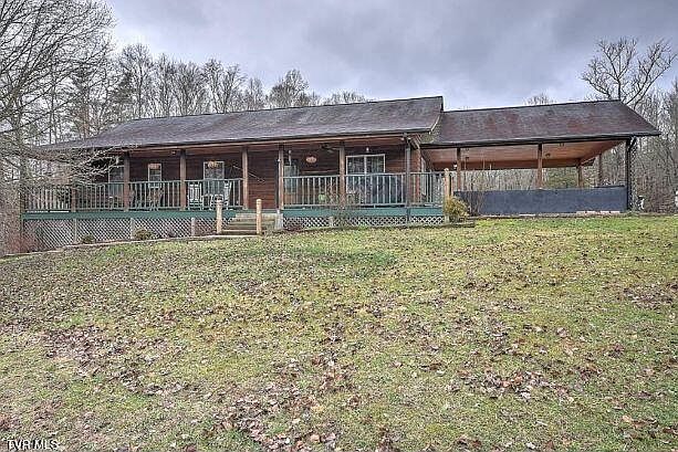BEAUTIFUL HOME IN A SERENE COUNTRY SETTING, YET CLOSE TO TOWN! It sits on 3 acres with a stream running in the front with no close neighbors. Massive front porch to sit and enjoy your free time relaxing or entertaining. The big over-sized carport. There is good flow from the large living room to kitchen to dining area. The kitchen features beautiful wood cabinets, plenty of counter space, an island, stainless appliances and updated back splash. Just off the kitchen is a convenient laundry / utility room. The home features a good-sized master bedroom, complete with large master bath with double vanities, a jetted tub, and separate shower. There is a large den, man cave, play room, etc., that isn't walled and finished out, but it has a wood stove to keep it toasty and warm in the cold months. There is also a large canning, craft or storage room. One end of the basement has a two-car garage with a workbench on one side and utility sink on the other.