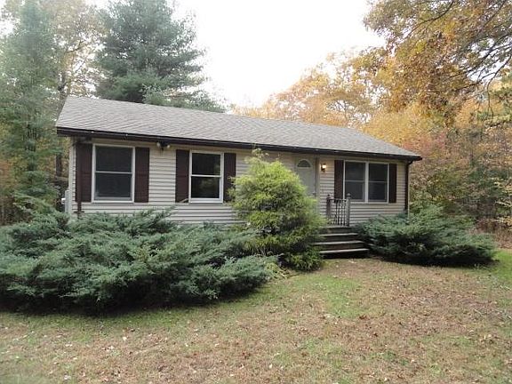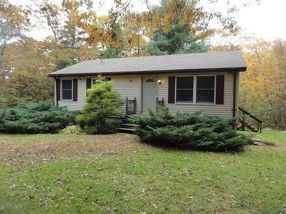 Fantastic 2 bed ranch with maintenance free vinyl siding, newer roof, deck and walkout basement. Large 3 acre lot with long driveway and plenty of privacy! Hardwood flooring in the living room. Finished lower level with spacious Den and room for a wood stove. Upgraded electric service as well! Rural location yet close to all amenities. Perfect for a first time buyer or someone looking to downsize. This property is eligible under the First Look Initiative for the first 20 days on market. No investor offers until first look period expires.