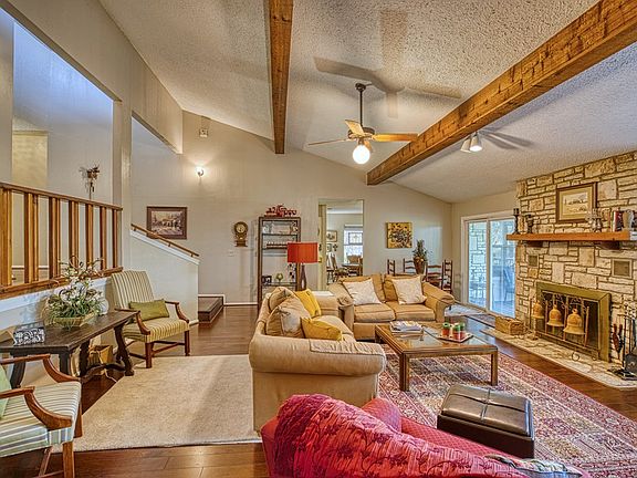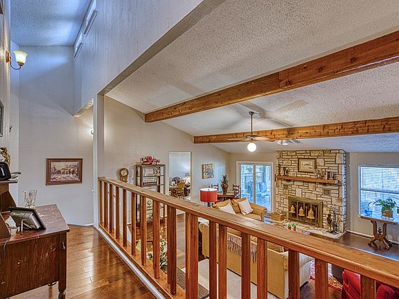 Spacious, delightful home with 5 bedrooms 3 baths on 3.13 acres. There is a beautiful, dramatic entrance into the home which sets the mood for touring the rest of the house and property. Large rock FP, high ceilings with beams in the Great room, hardwood and tile flooring throughout,spacious bedrooms with lots of closet space and two living areas. Updates in the last two years include interior,exterior paint, hardwood flooring and new roof. Great house for entertaining as you exit out to a fifty foot deck and an additional patio area with a cozy firepit. There is an office with A/C and a nice greenhouse/sunporch off the breezeway. There is also a good garden space for the gardener in the family. This house has many possibilities to change the layout making the upper bedrooms into one bedroom with living area or large office. This wing has its own outside entrance and would work well as a mother-in-law suite or great for your visiting friends and relatives. The den also doubles as a dining space and second living area. The home has a great floorplan and a pleasure to show. The property is very pretty and offers seclusion, privacy and nice yard space.