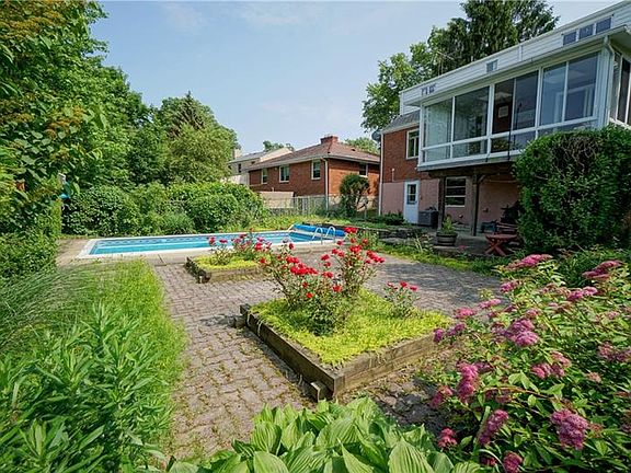 Charming 4 bedroom, 3.5 bath home in Sunset Hills area of Mt. Lebanon. Level lot with 12 x 24 ft heated in-ground pool. House is much larger than it appears from the street. Spacious rooms on first floor include 4th bedroom/den/study, large living room with bay window, dining room and 3-season sunroom with skylights and floor-to-ceiling windows. Nice size eat-in kitchen. Original hardwood floors throughout (under the carpeting). Master suite on 2nd floor has a full bath and nice closet with access to attic space. Basement has large paneled game room with wet bar. Door exits to patio and pool. Separate laundry area with lots of storage and amazing workshop with built-in work benches. A second door exits to rear yard which has flowering shrubs, a perennial border and a garden shed. Great location for an easy commute, award winning Mt Lebanon schools and fantastic community amenities.