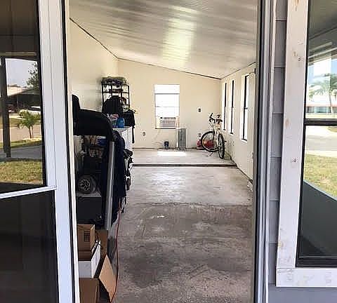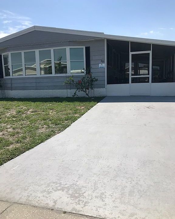 Retirement could not be any better then living in this 55 plus retirement community of Palm Lake Estates! This is a two bedroom, two bath home. The laminate flooring is beautiful and has the same style laminate throughout the home. This home has a beautiful kitchen with all new wooden cabinets, pantry and a farm sink. The electric flat top stove, dishwasher, microwave is only a year old and the refrigerator is two years old. The living / dining area has an open concept with a built-in island that separates it from the living room. There is an additional side porch entrance way. The master bedroom is spacious with lots of room for a king-size bed and an armoire and dressers. Both bathrooms have high rise toilets. There are handicap bars in both bathrooms. There is a large screened in porch off the kitchen entrance way. The washer and dryer are in the oversized shed that is off the screened porch where you would have plenty of room for exercise equipment. There is a portable air conditioner in the front and back of the shed for extra cooling when you're doing laundry or working out. There is a small patio to relax and feel the summer breezes and watch the beautiful sunsets. The roof was inspected and re-coated last year. The air conditioner is about 3-4 years old. This home will be ready and available to move in within a few weeks after purchasing. Prior to purchase an application must be completed to reside in this lovely community to ensure financial and background stability. Location, Location, Location! Close to all sorts of shopping venues, grocery stores, beaches, medical facilities, and only an hour away from Orlando and fifteen minutes from Melbourne airport! This is a wonderful community of caring neighbors and all sorts of amenities such as our beautiful heated pool, whirlpool spa, pavilion with large outdoor TV, fire pit, charcoal grill and plenty of seating, state of the art clubhouse where a plethora of activities are offered, a walking path around the pond and much more all included in the highly competitive lot rent of $625 per month which also includes all waste removal. Call Patty, to schedule an appointment to see this home along with a tour of our lovely quiet, friendly, safe community.