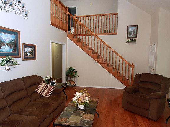 An absolute perfect setting for this 4 Bed-4 Bath home. Inside two living areas provide lots of room, coupled with Two master suites, hardwood flooring and vaulted ceilings! Enjoy pool parties, barbecues, and fun in the fenced back yard. Do you have a need for adventure or just love nature? Hop the fence and play in the wooded back acreage. Don't forget the detached garage! Have a boat, hot rod, motorcycle, 4-wheelers?