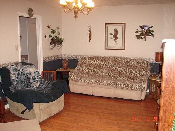 Much more house than it appears. Lots of room and many possibilities. Borders Hillcrest but not in the Subdivision. House could easily be 5-6 bedrooms with the finished space downstairs. One window air conditioning unit stays. Heat is Gas Hot Water Baseboard. Cooling is a Heat Pump for Cooling only. Extra wide hallways and room entrances. Bedroom Suite in 2 bedrooms, Living Room Suite(what matches) and most of Dining Room Suite can be negotiated. One refrigerator of the two stays with the house. Electric Budget-$109, Gas-$115. Up to $2000 carpet allowance provided for finished basement. New garage door, new porch, new water heater. Oak cabinets in kitchen. Don't just drive by. Much bigger than it looks.