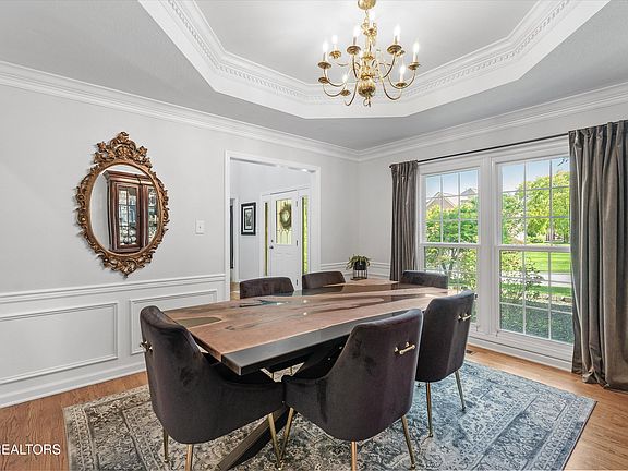 This beautifully crafted all brick 4-bedroom, 4-bathroom home offers just shy of 3,700 sq ft of timeless style and exceptional comfort. From its soaring cathedral ceilings to the spacious private backyard, this two-story gem is designed for both everyday living and elegant entertaining. The formal dining room boasts a trey ceiling and intricate dentil crown molding, adding a touch of sophistication. A dedicated office on the main level provides a flexible space for work, study, or relaxation. The kitchen offers tall cabinetry, abundant storage, a gas stovetop, and a wall oven—perfect for anyone who enjoys cooking or hosting. Just off the kitchen, this home welcomes you with a large living room featuring dramatic ceilings, a cozy fireplace with a new insert, and a built-in wet bar—an ideal setting for gatherings. A guest bedroom and full bathroom are also conveniently located on the main floor. There are two staircases leading upstairs, which provide a spacious layout that includes the primary suite with its own private balcony, two walk-in closets, and an en suite bathroom—offering a true retreat at the end of the day. Two additional bedrooms and a versatile bonus room provide plenty of room for family, guests, or hobbies. Within the bonus is a spacious closet and a large laundry room with utility sink. Step outside and enjoy your own peaceful oasis—a great deck and a spacious, private backyard perfect for relaxing, entertaining, or play. The yard is wired for an invisible dog fence and features a full irrigation system for added convenience and care. As a bonus, this exceptional home is located in the desirable Saddle Ridge Subdivision, with access to fantastic neighborhood amenities including a clubhouse and community pool. It's a rare opportunity to enjoy the best of both private living and community charm.
