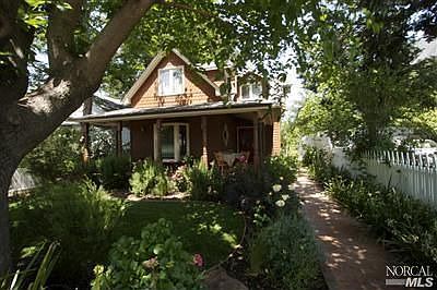 Downtown location w/charm, privacy & convenience, on a prestigious, historic Healdsburg street. Within easy walking distance to Plaza and Russian River. Access to restaurants, shopping & wine tasting. 3BR/2BA w/ 1BR downstairs, hardwood flrs, radiant heating, detached 2-car garage with alley access, partial basement, inviting front porch, lots of room for gardening. Great family home or weekend getaway. City has approved plans for granny unit.