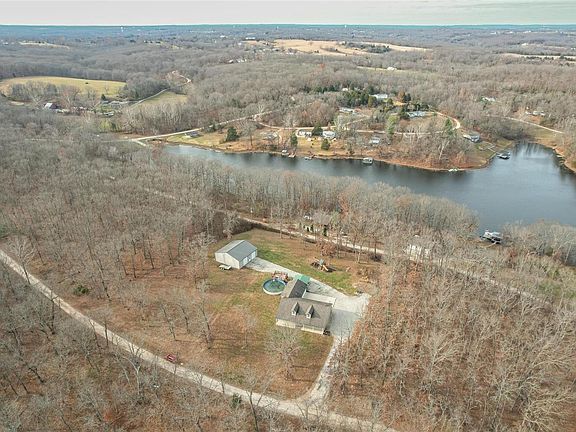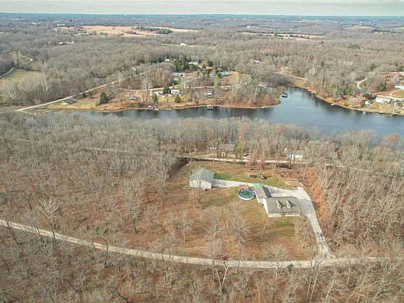 Look at the aerial view of this great getaway all year long, with all the amenities & on private 2 acres. Inviting in every way, covered front porch, desirable vaulted ceilings, open living/dining/kitchen concept with hard wood & new engineered wood floors. Love the center island, custom cabinetry, pantry, lots of counter space, appliances included, dining area with French door view of the outside. Main floor master suite, tub shower combo, double vanity, walk in closet, main floor laundry, 2 additional good size bedrooms & hall bath. Staircase leads to 9 foot pour, a spacious rec room, office space & more. Rough in bath is framed with shower pan, just finish for a 3rd bath. Plenty of storage space & a walk up to the over sized 2 car garage. Covered patio area, swimming pool and look at this 40x40 out building to store toys & more. 4 tax id's total the 2 acres. What's not to love at this address! Additional tax id's: 30-3-050-2-001-253000, 30-3-050-2-001-252000, 30-3-050-2-001-225000.