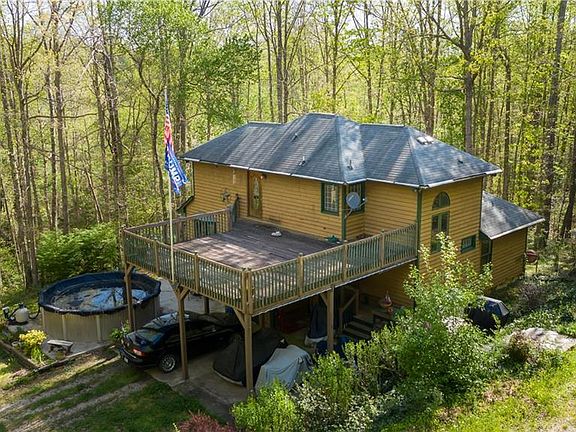 Extreme Privacy, but not far from the essentials, your own hideaway paradise. Master Craftsman's Dream. 2BR 2BA, nearly 1700 hsf home on nearly 32 acres of gorgeous land with stream and wonderful wildlife. Professional woodworking owner has remodeled this home beautiful knotty pine tongue and groove paneling, vaulted knotty pine ceilings featuring skylights allowing ample natural light. Creekrock F/P with wood insert, updated kitchen with newer appliances, granite countertops, gas cooktop. Home has new HVAC and new pump in well. Upstairs features loft Master, with unique bowl sinks, jetted tub & huge walk in closet. Large woodworking shop, tools available to purchase separately. This will not last long!