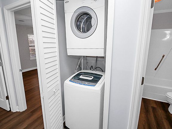 Inside there is grey LVP throughout, stainless steel appliances, granite countertops, updated bathrooms, spacious bedrooms and transitional floorplan. Oversized bedrooms and spacious closets. Awesome layout for hosting, working from home, or roommates. Spacious unit on the third floor.