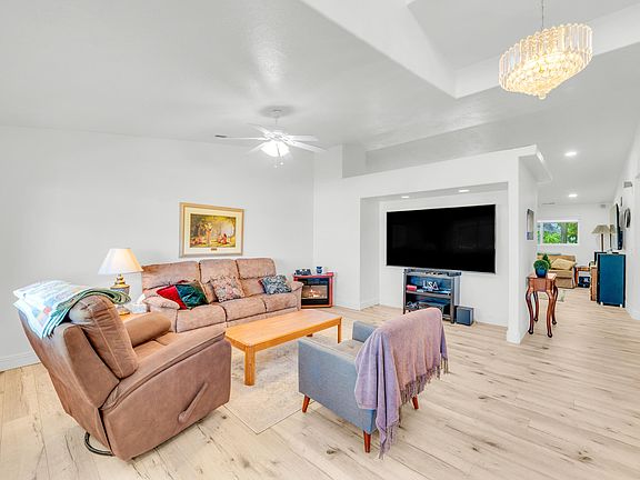 Don't miss out on this incredible home! You'll enjoy breathtaking views from both the front yard and backyard, along with an oversized driveway, RV parking, and a lush backyard for ultimate relaxation. There's even a second lower driveway providing convenient access to the basement, which can serve as an income-producing rental unit or a spacious entertainment area. The basement boasts a massive layout with a gas line already installed for a fireplace or future oven, and it offers ample room for a kitchenette. Recent upgrades include new flooring, carpets, blinds, and countertops. Additionally, two new AC units were installed less than two years ago. Not to mention, the extra-wide garage offers storage above it. And the best part? No HOA fees! Schedule your viewing today!