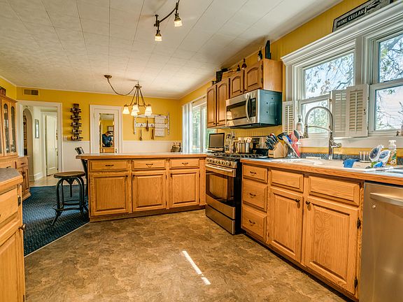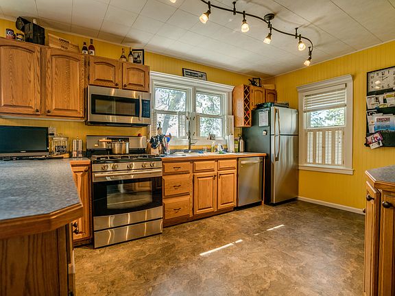 Don't miss this classic, timeless home filled with beautiful craftsmanship from days gone by and tons of modern updates! The main floor has updated Leingang windows and the exterior has steel siding. Updated upper level and basement windows as well! The beautiful hardwood floors were recently redone & there is new paint throughout! The large kitchen has newer cabinets, pantry, & almost-new stainless steel appliances. Formal and informal dining rooms! Gorgeous base and case! Upper level is a huge master bedroom with double closets & sitting area. Main floor offers a 2nd bedroom, large living room w/ updated electric fireplace & separate art / sitting area plus full, updated main floor bath! The basement offers 2 additional bedrooms w/ egress windows and one offers a 2nd electric fireplace. There is also a laundry, bath, and WINE CELLAR! New energy-efficient furnace and central air in 2016! Enjoy the landscaped yard w/ garden area from your deck w/ new maintenance-free deck boards! Front yard has a sprinkler system w/ 2 zones. Attached, insulated single-stall garage w/ new opener and detached, oversized, insulated & heated double garage w/ 220!