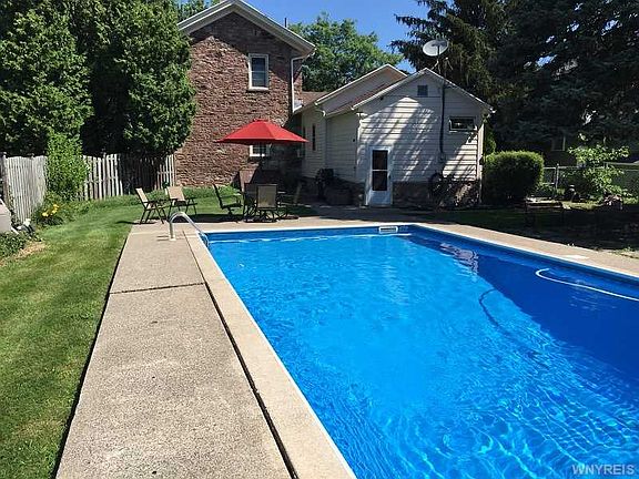 4 bdrm, 2 full bath "1875 original Medina sandstone" home. Owner's have spent over $40,000 in improvements in last 2 yrs. 29 new windows, gutters, exterior & interior doors, granite counter tops, appliances, pool filter, remote ceiling fans & fresh paint throughout. French doors, natural woodwork, hardwood floors. 15 x 10 entry foyer. 36 x 24 in ground pool. Parking in rear by 2 story carriage house w/2 bay garage plus 2 bdrm, 2 full bath pool house w/lots of natural woodwork. This house is more than move in condition. Taxes do not reflect any tax discount.