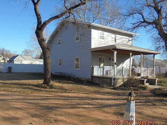 Updated property is on an acre of land in Kingman, KS. It has a large concrete front porch across the front of the house that looks out over a very large front yard. It has 5 Bedrooms. A large master bedroom and another bedroom are on the main floor, with 3 bedrooms upstairs, it has 2 bathrooms one is on the main floor and one is upstairs, a very large formal dining room and living room, an office is also on the main floor. The large eat in kitchen has been updated with new flooring, paint and new Corian counter tops. The main floor bathroom has been totally updated. The large upstairs bathroom has also been updated beautifully. New carpet and paint in the main floor bedrooms and office. The total square footage of the great family home is 2,880 sq. ft., you have got to schedule your viewing of this home today.