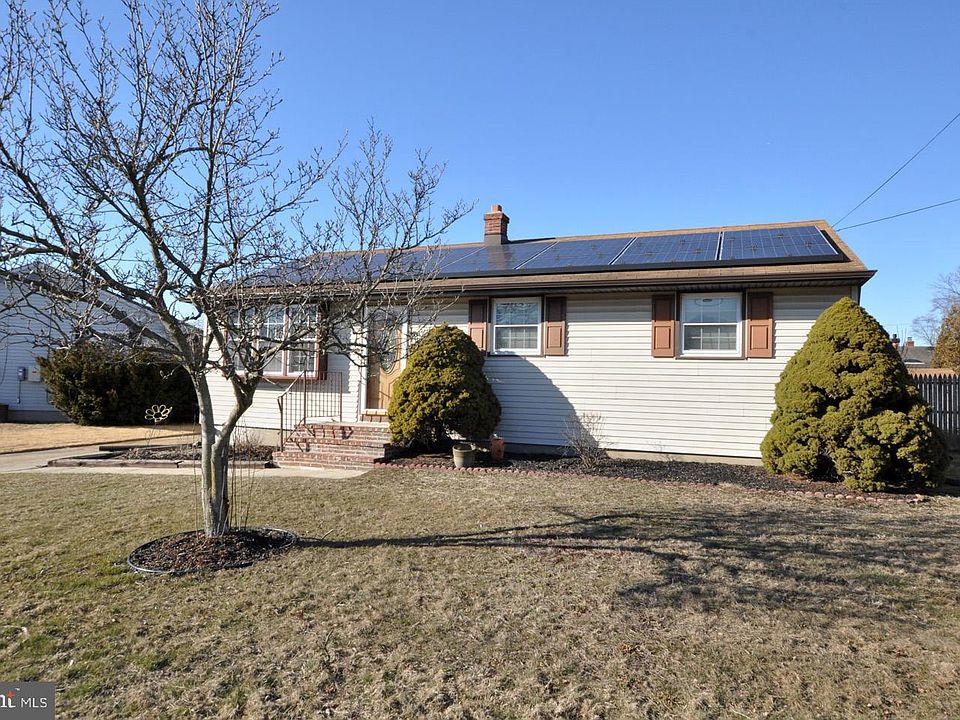 Opportunity awaits! Welcome to this 2 bed 1 bath ranch style home in the desirable section of Palmyra! This home has been lovingly cared for by the original owners and is ready for you to make it your own! The living room is a large space, offering a bay window creating natural light, recessed lighting, has carpet, ceiling fan and a large coat closet. The living room flows into the dining room and kitchen area, great for entertaining. The kitchen has plenty of cabinets, making the most of this space! There is a newer stainless steel refrigerator. There are 2 bedrooms (originally 3 but owners converted the 3rd into one master bedroom). The main bedroom offers 2 large closets and 2 ceiling fans. The 2nd bedroom is currently used as a laundry area, but laundry hook ups are also in the basement, so can easily be converted back to a regular bedroom. The basement is full size. Half has been finished with paneling and carpet. The fenced in backyard can be your very own oasis! There is an in ground pool with a liner (which has been replaced within the last 5 years) and you'll have endless fun with the slide into the 8 ft deep end! There is a large maintenance free trex deck that is great to relax and enjoy the yard. There is a large shed for storage. You'll love the solar panels to help off set the cost of gas and electricity. This is a great opportunity to own a home in a wonderful neighborhood . This home is being sold in its as-is condition, buyer responsible for twp CO and any repairs needed to obtain a mortgage. Join us at the Open House Sunday, Feb 25th.