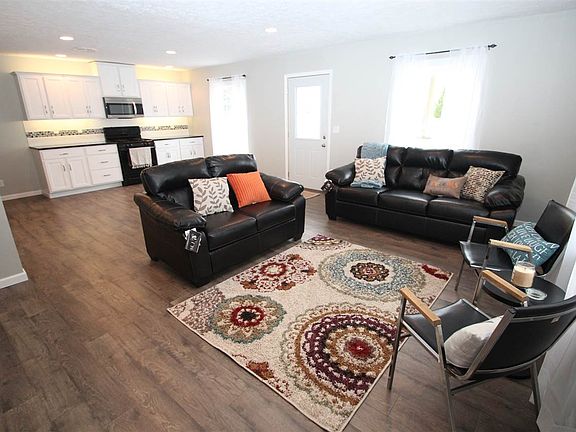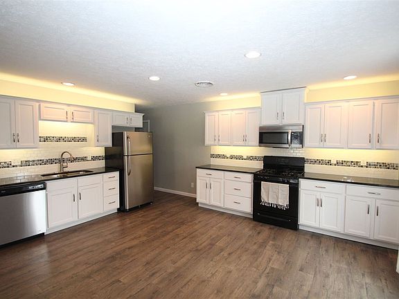 This newly renovated home is a must see! Spectacular open concept living area features new exterior door, recessed lighting, beautiful mohawk flooring, new custom kitchen cabinetry, fully applianced kitchen, deep stainless sink, beautiful back splash, and granite counter tops. Large bedrooms have spacious closets, new carpeting and doors. Master bedroom exits onto back yard deck. Completely remodeled spacious bath includes tub/shower combination, new tile, and updated vanity and fixtures. Additional features include: laundry room, newer roof, new hot water heater, new 97% efficient gas forced heat and central air, new insulated overhead garage door, new white vinyl privacy fence, freshly sealed black top driveway, freshly painted exterior, and large yard.
