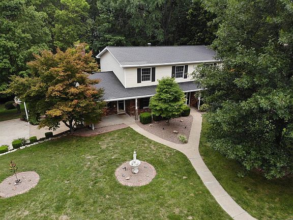 Take a look at this meticulously maintained 2 story house that features 5 bedrooms, 4 bathrooms and sits on a park like partially wooded lot. Kitchen features custom cabinetry with soft close drawers, granite countertops, and top of the line stainless appliances including a new smart refrigerator. Adjoining hearth room provides additional living space and has a wood burning fireplace. New Lighting fixtures have been updated throughout the house. Bathrooms updated with Blue Ridge Pine LVP flooring and new fixtures. Lower level recently updated with new flooring, remodeled lower level bathroom with custom made wood vanity, Wet bar with a live wood edge bar top and built in wine fridge. Outdoor space has been updated with new pergola, lighting, firepit area, and a custom built shed with a concrete pad. House has many more features including home central vacuum system. Ask your favorite realtor for a list. Seller offering 1 year home warranty. House has passed Collinsville City Occupancy
