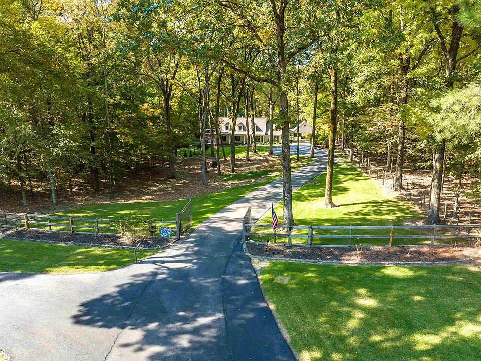 Tucked away on a private 5.5+acres you will find the most peaceful setting. This understated home has been meticulously maintained and improved over the years. 3BR,3.5BA,Office and bonus. Beautifully renovated kitchen w/custom cabinetry and Thermador appliance package. The kitchen opens to a cozy hearth rm. with built-ins and gas or wood burning FP. Off the hearth rm. you have a generous office space. The formal living room w/wood burning FP. offers additional space to entertain. The large primary suite offers a spa like bath w/heated tile flrs.,soaking tub and custom walk-in shower. The outdoor space is unlike any other! Includes Trex decking that wraps around the house w/rod iron railing, Grill/lounge area overlooking the pool. A separate covered patio w/retractable screen. The backyard shop 45x25 has 3 bays (2 open & 1 climate controlled). The property also includes 50x24 metal shop w/electricity and water. The property is fully fenced and gated at the entrance and has a generator!