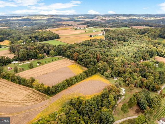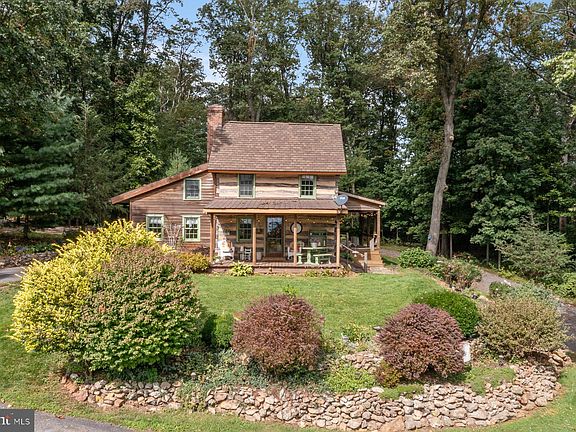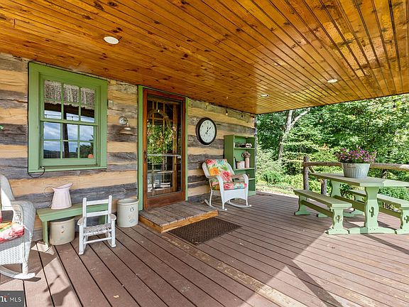 Looking for a quaint secluded farm to call your own? You won’t want to miss this property! A moved and reconstructed charming 1840’s log house with modern additions is the centerpiece of this small farm set on almost 18 acres among the trees in northern Carroll County, Maryland. Main floor living includes a very large bedroom/great room with two-story vaulted ceiling and skylights, full bathroom with laundry facilities, a living room with log and chinking walls, and a brand-new kitchen. Two additional bedrooms and another bath complete the two upper floors of the log cabin, and a basement provides additional living or storage space. Lots of windows all around gives great panoramic views. Enjoy front porch views of yard, pasture, fields and the valley, or side porch seating with a view of the forest. The gravel driveway winds through trees to this secluded property which has a peaceful, tranquil air. The farm includes a small barn with feed room, two fenced pastures which currently contain sheep, fiber goats and a mini-donkey as their guardian, and the potential for additional pasture in a large grassed area. The current owner has added in a raised bed garden, fruit bushes, lavender and several fruit trees. Wild raspberries and blackberries are abundant on the farm, which is approximately half in trees of both native and other varieties, and half cleared land. Other outbuildings include a detached garage, a structure with renovation potential and a run-in shelter in the pasture. The farm’s apiary containing four colonies of bees takes advantage of the farmland and wildflowers in the area. There are two fields currently leased to a neighboring farmer who plants corn and soybeans yearly. Large number of improvements over the last three years include new kitchen, all PVC plumbing, additional heating and cooling in the form of ductless minisplits, upgraded electrical, new well pump, new well pressure tank, and much, much more. If you are looking for a small farm to call your own, this is the place. The peace and quiet of the country and your own small farm, but a short drive to all the amenities, with amazing neighbors, this is one of Carroll County’s prettiest places to live.