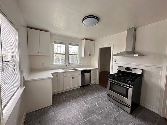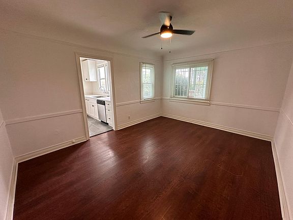 Located in Leimert Park! This two-bedroom, two-bathroom duplex has been remodeled from top to bottom. It features large bedrooms, hardwood floors, a new kitchen with white cabinets, quartz countertops, stainless steel range, new bathrooms, and ceiling fans in each bedroom. There is a private front yard with fruit trees and a small back patio. Private, gated parking for 2 cars. Utilities are included. Centrally located off the 10 freeway. 15 minutes to downtown and USC, and 15 minutes to downtown Culver City! Available July 5. Owner pays all utilities