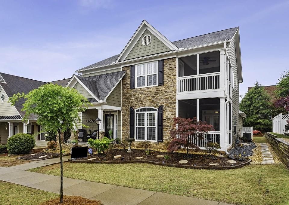 All offers in by 9 pm Sunday, 4/16. Thank you. This beautiful Craftsman home in Old Suwanee subdivision is a must-see property with its charming gas lanterns and tree-lined streets plus sidewalks and a park with a gazebo for a wonderful feeling of community. The home has a low maintenance exterior, and all lawn care and trash pick-up are included with your HOA membership. Conveniently located near Suwanee Town Center, area parks (including one in the neighborhood), greenway trail, White Street Park/Orchard & the Suwanee Community Garden. This immaculately maintained home offers a covered front porch and two additional screened porches - one off the primary bedroom and one off the kitchen! Hardwood floors in the spacious family room and dining room welcome you once you enter the open 2-story foyer. The family room opens to a beautiful brick-paver patio with pergola and expanded decking - perfect to enjoy outdoor dining or relaxing. The bright kitchen features lots of dark cherry stained cabinets, stainless steel gas range and dishwasher, built-in microwave, and a breakfast bar with deep stainless-steel sinks. The breakfast area opens to the charming, screened porch which would be perfect for your morning coffee! The kitchen also features a hidden walk-in chef's pantry for fun, in addition to a regular pantry located in the mud/laundry room. Upstairs you will find the expansive and light-filled primary suite with a double trey ceiling, upgraded fan/light fixture, a fabulous, updated bath with oversized glass enclosed shower with rain shower head, his and her sinks with vanity area, and a walk-in closet. You can also enjoy the upper-level screen porch from the primary bedroom, maybe having morning coffee there or just relaxing with a good book! The secondary bedrooms both have ceiling fans and good-sized closet space. This is a lovely home with lots of curb appeal! Updates include new upper-level HVAC unit; Nest thermostats, roof approximately 7 years old. Must see in person to appreciate this home's charm!