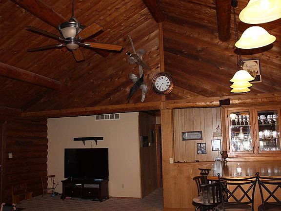 Secluded, Authentic 2436 sq ft log home on 2.37 acres just outside Wamego city limits, 4 bedroom (1 non-conforming), 2 full bath. Large open floor plan with vaulted ceiling. Walkout basement with family room and whole house fireplace. Double car detached garage with heated workshop and storage area for mower etc. property was completely remodeled in 1999, new roof on house and garage in 2013.
