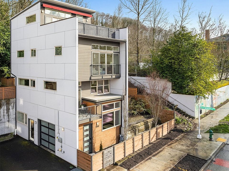Spread over four light filled levels, this standalone townhome w/garage offers the best of urban living. Rare 4bed/3.5 bath with flexible floor plan for the varied ways we live today. Main open live space w/deck#1 & kitchen featuring upgraded Viking range, newer dishwasher & half bath. Large private deck#2 on your way up to third floor featuring two bedrooms, dual access bath & newer washer/dryer. Top floor primary bed or family room w/full bath, wet bar & rooftop deck#3 boasting views of Elliott Bay & W. Seattle. Main level studio space next to garage, ideal as 4th bedroom for guests w/full bath & washer/dryer hookup or as a home office. Freshly painted interior. Convenient to transit, vibrant shops/eateries, Alki Beach & downtown Seattle.
