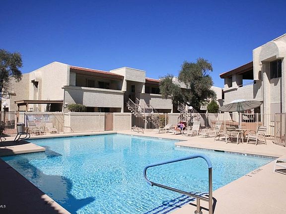 Lovely community with a heated pool. Two bedrooms/2 baths. Large living/dining room. Master has walk in closet and private exit to the back patio. Private laundry in condo. Fresh paint. It is in awesome condition. Front patio overlooks the pool and the back patio overlooks the walking path. Water/sewer/garbage and CABLE are included in the rent. This is a great location. 2 minutes from the freeway, Costco, Paradise Valley Mall and Stone Creek Golf Course. 5 minute drive to hiking the mountain preserve. Condo backs up to the Indian Bend Wash with miles of walking/biking trails. Such a low price to live in the Paradise Valley area. HOA Only allows pets under 25lbs. Also for sale or possible lease purchase.