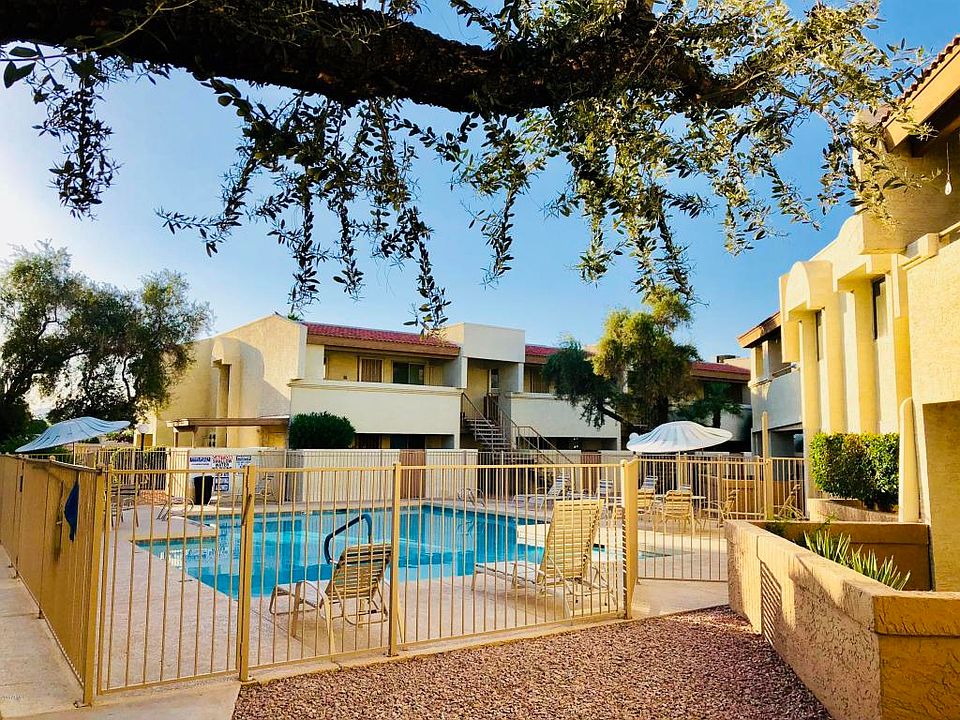 Rare opportunity to own in Las Casitas. Close to AZ-101 & Hwy 51. Paradise Valley Mall is right around the corner; great shopping, trendy dinning and golf. 2 large oversized bedrooms both feature walk-in closets. The living room and master bedroom both have access to a balcony overlooking the luxurious community pool. Welcome home!